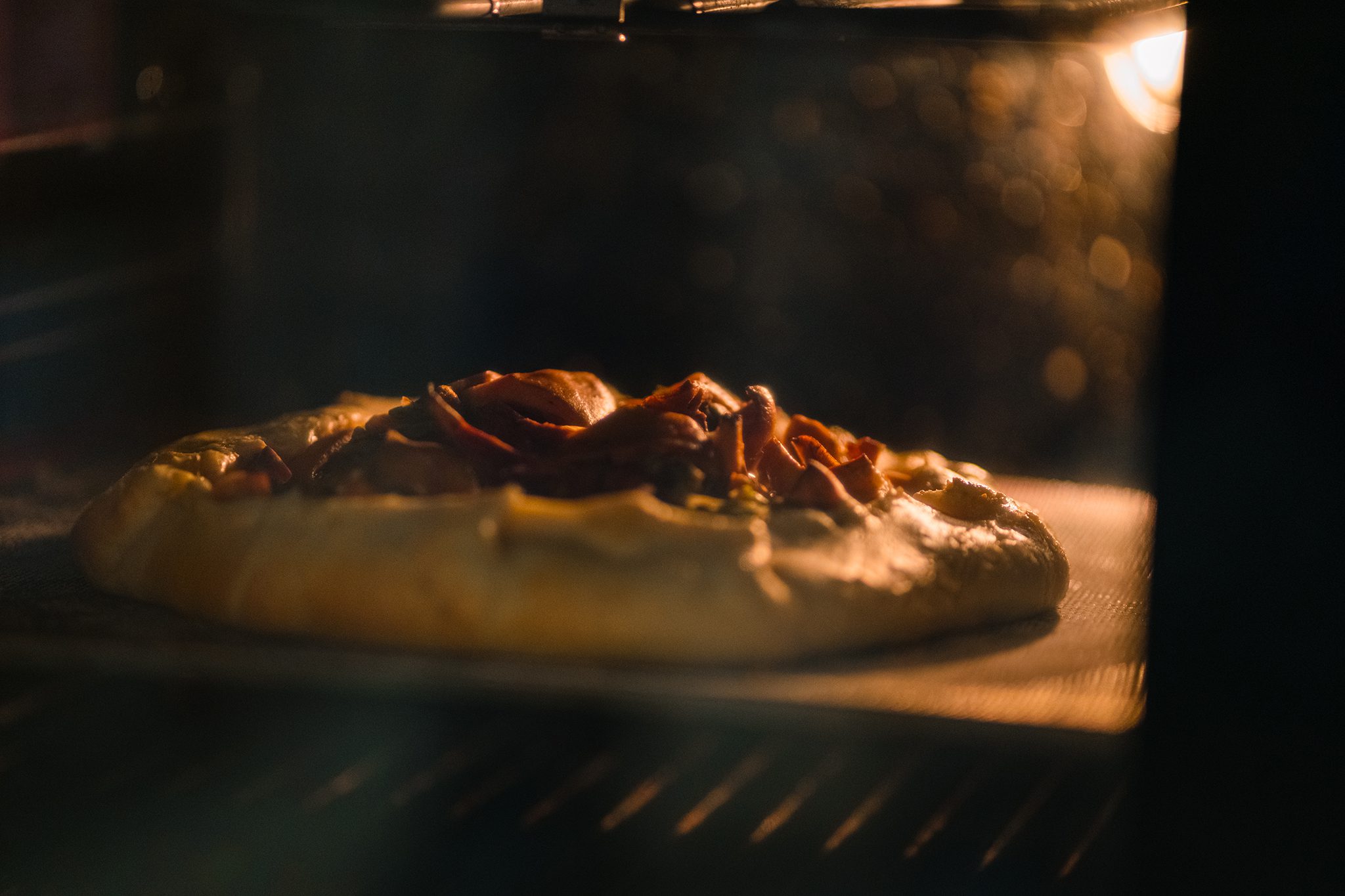A tészta peremét felvert tojással megkenjük, majd 180 °C-ra előmelegített sütőben kb. 15 perc alatt sötét aranybarnára sütjük.