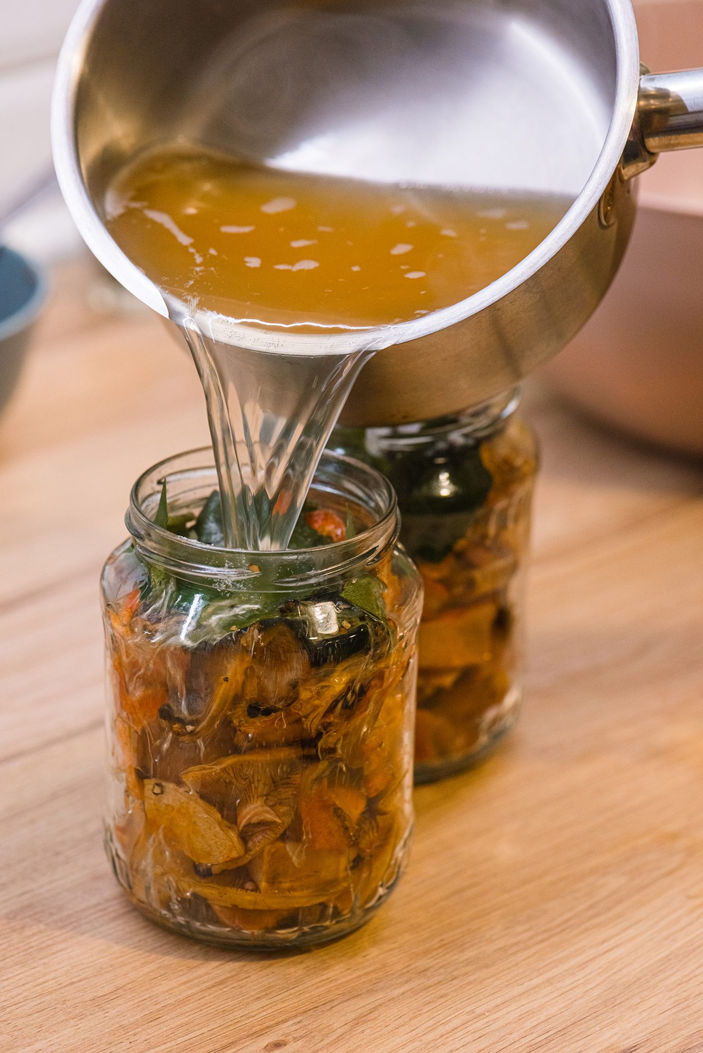 A barnasört az ételecettel, a juharsziruppal és a sóval felforraljuk. (A folyadék erősen habzik, ezért fokozott óvatosság szükséges.) A forró keveréket az üvegbe öntjük, egészen a peremig töltve. Az üveget azonnal lezárjuk, majd a tetejére fordítjuk, hogy vákuum képződjön.