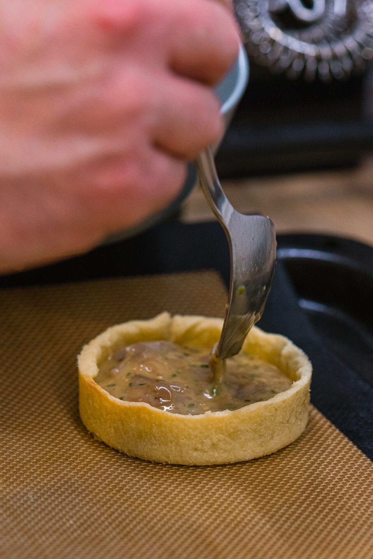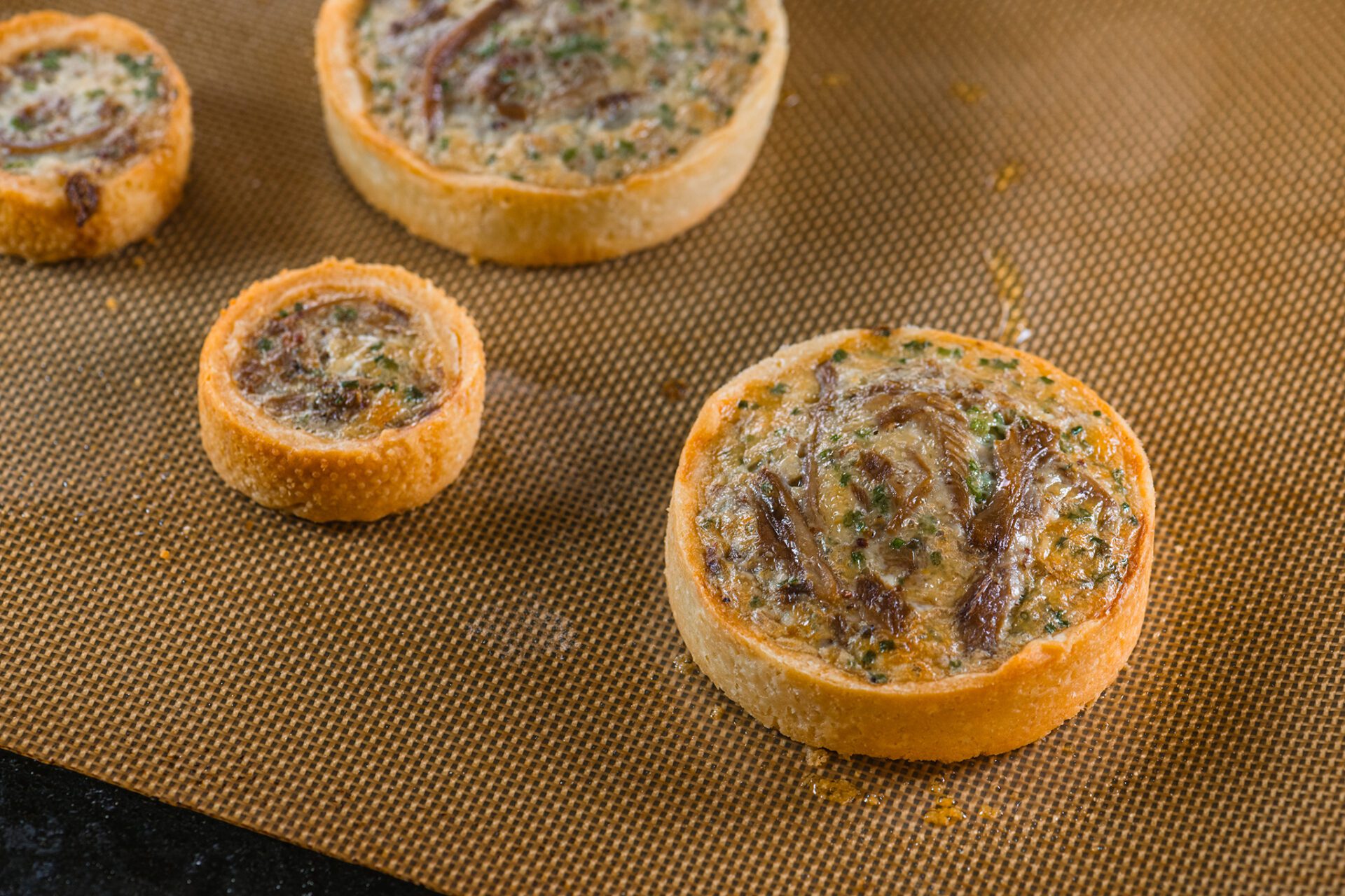 Elősütjük a mini quiche: 200 °C-on 9 percig, a nagy quiche: 190 °C-on 12–15 percig